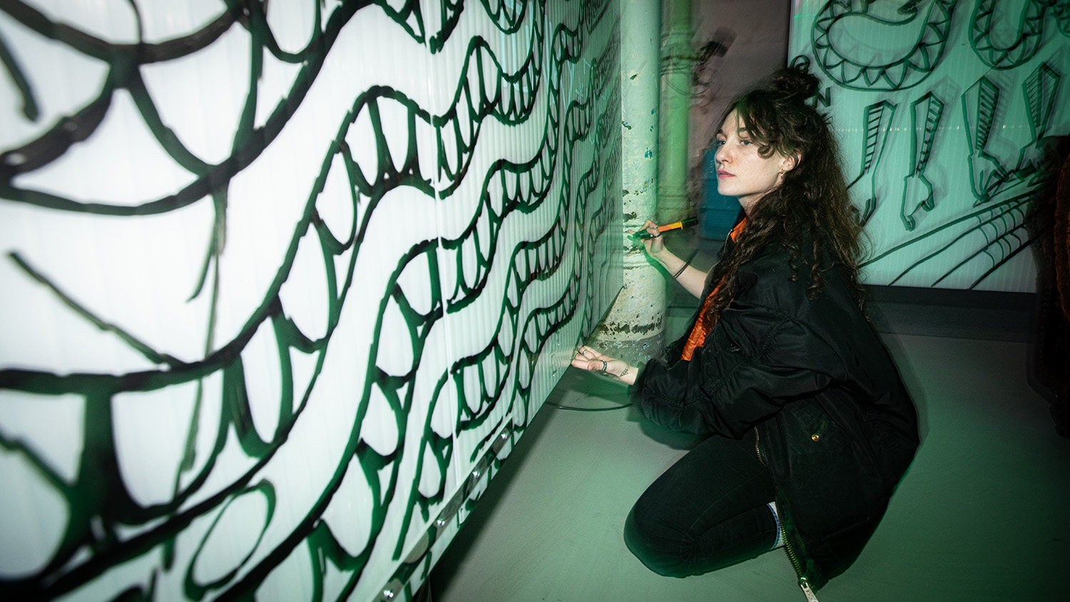 Alongside the simple seperation of space, the idea was that the panels allow to add another layer of usability to the venue. Serving as canvas for artists, they become active part of the temporary intervention.