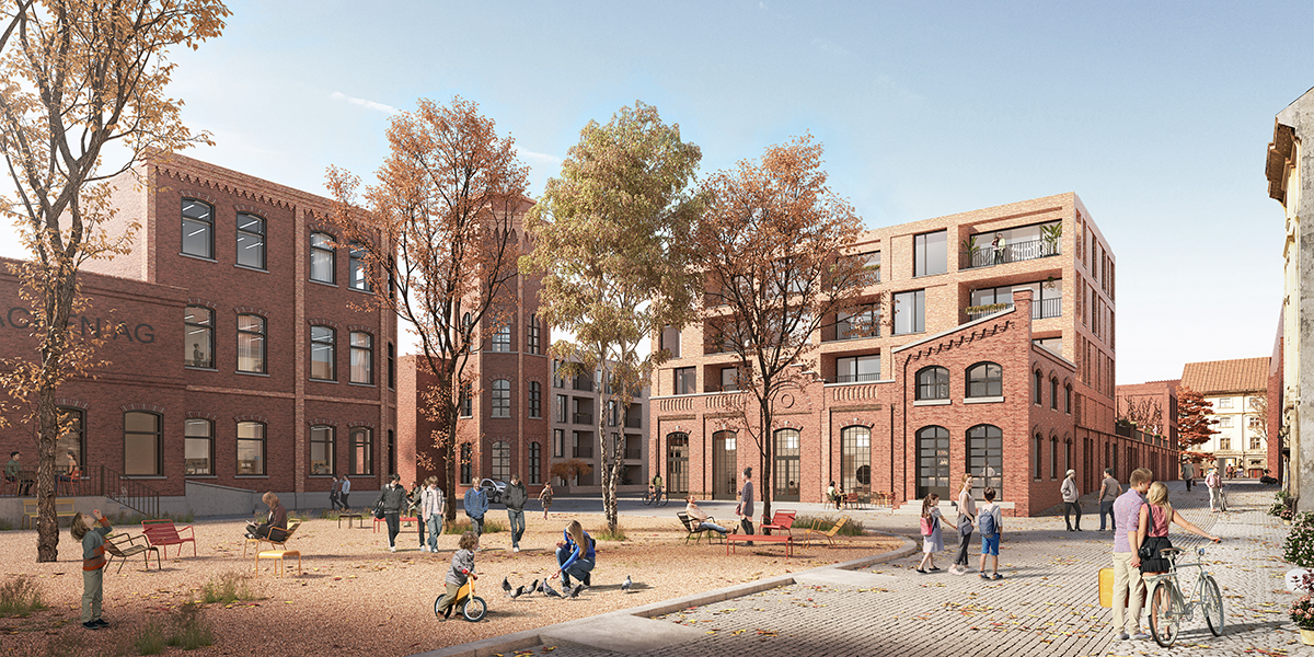 The distinct area is located inside of such an urban block. It is mostly hidden from the public, very quiet and original. The goal of the design was to keep the present qualities and magnificent identity, while developing a mixed-use quarter with for housing and small businesses. The historic buildings will be preserved and re-used.